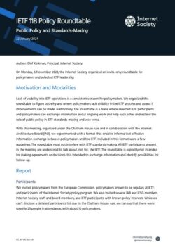 Because we observe a rising interest of policymakers in standards-making, the Internet Society organized this roundtable as an experiment on how to improve the visibility between policymakers and the IETF. While the substantive discussion was informative and may have clarified issues where there were misunderstandings, the greatest benefit of this meeting is its confidence-building nature.